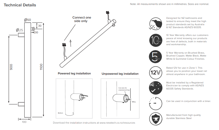 Please view technical line drawings below for any specific measurements. We will not be liable for mismeasurement of space meaning the Towel Rail you order does not fit right. Make sure the Towel rail suits the space before ordering as we will not refund.
