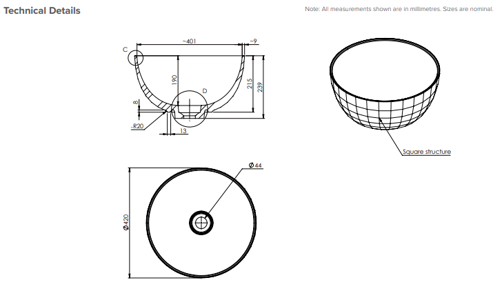 Please view technical line drawings below for any specific basin measurements. We will not be liable for mismeasurement of space meaning the basin you order does not fit right. Make sure the basin suits the space before ordering as we will not refund.